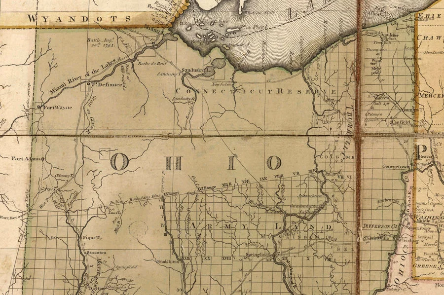 As per the Greenville Treaty of 1795, the western boundary of the United States was drawn south from Lake Erie along the Cuyahoga and Tuscarawas Rivers before veering to the west. The Treaty of Fort Industry in 1805 pushed that boundary even farther west into Ohio. Now, floods of settlers rushed into the “new west,” which included western Virginia, Kentucky, Ohio, and beyond.
